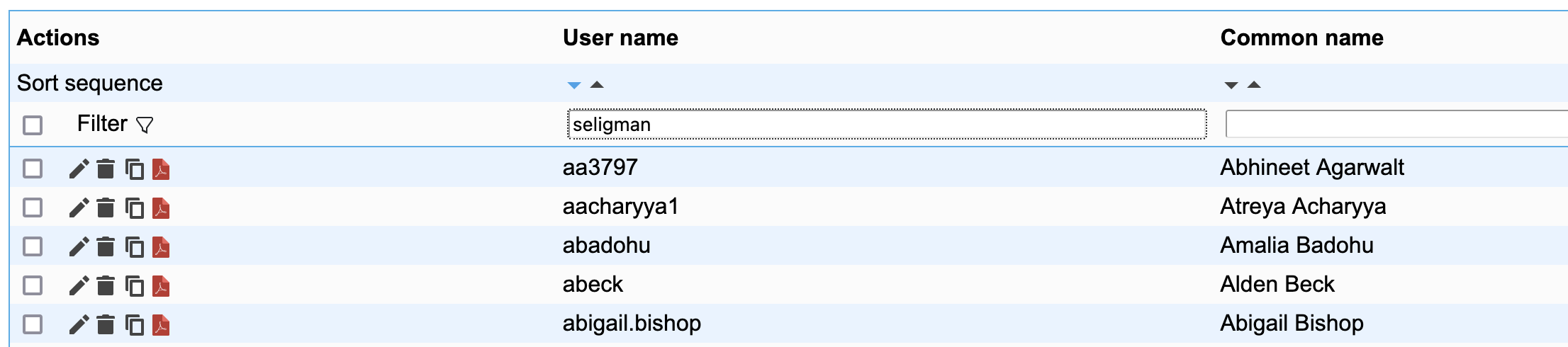 • Since you only want to interact with your own account, type your account name on the topmost line, labeled Filter.